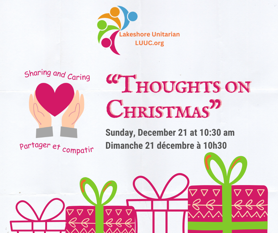 Nous avons prévu des séries de présentations et de discussions intéressantes pour nos services du dimanche, qui ont lieu la plupart des dimanches, de septembre à juin, à 10h30. Chaque présentation et discussion sera suivie de breuvages et de conversations. Coût: Les contributions volontaires sont les bienvenues.