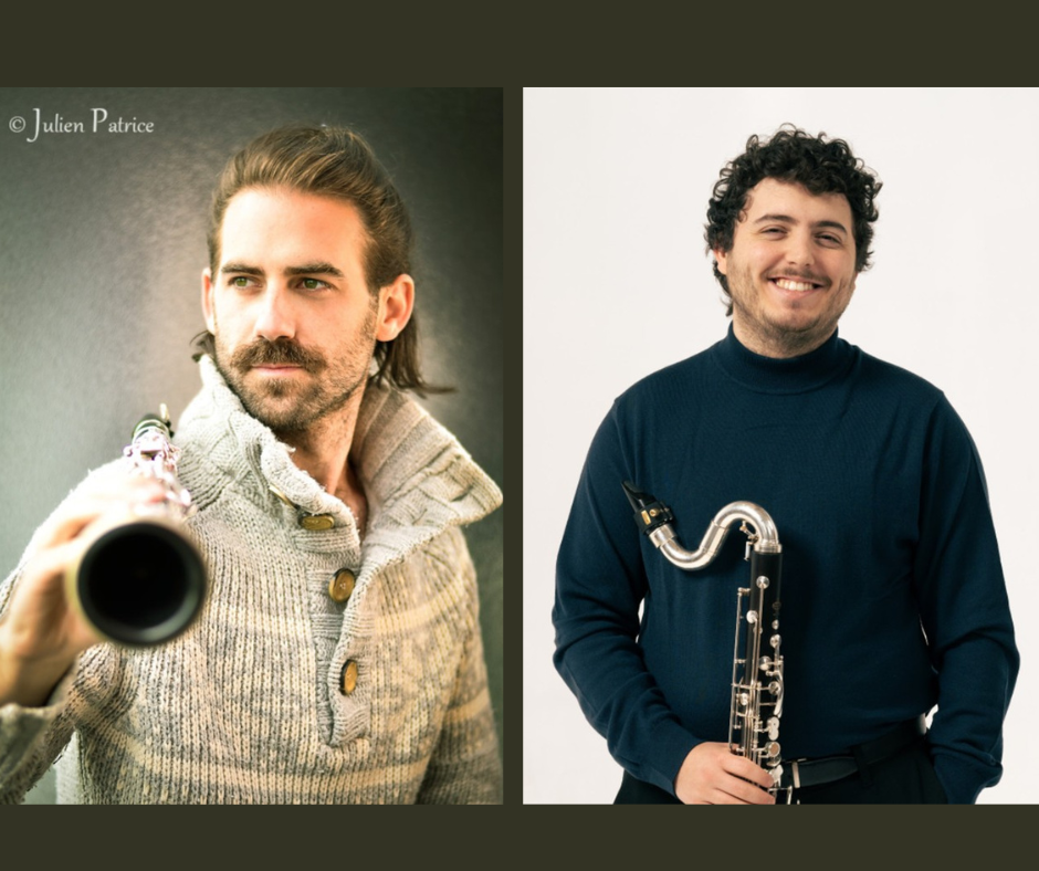 Marvelous clarinetists Antonin Cuerrier and Victor Alibert will show the versatility of the clarinet through solo and duo works from Johann Sebastian Bach, Marin Marais and traditional pieces from Eastern Europe and South America.